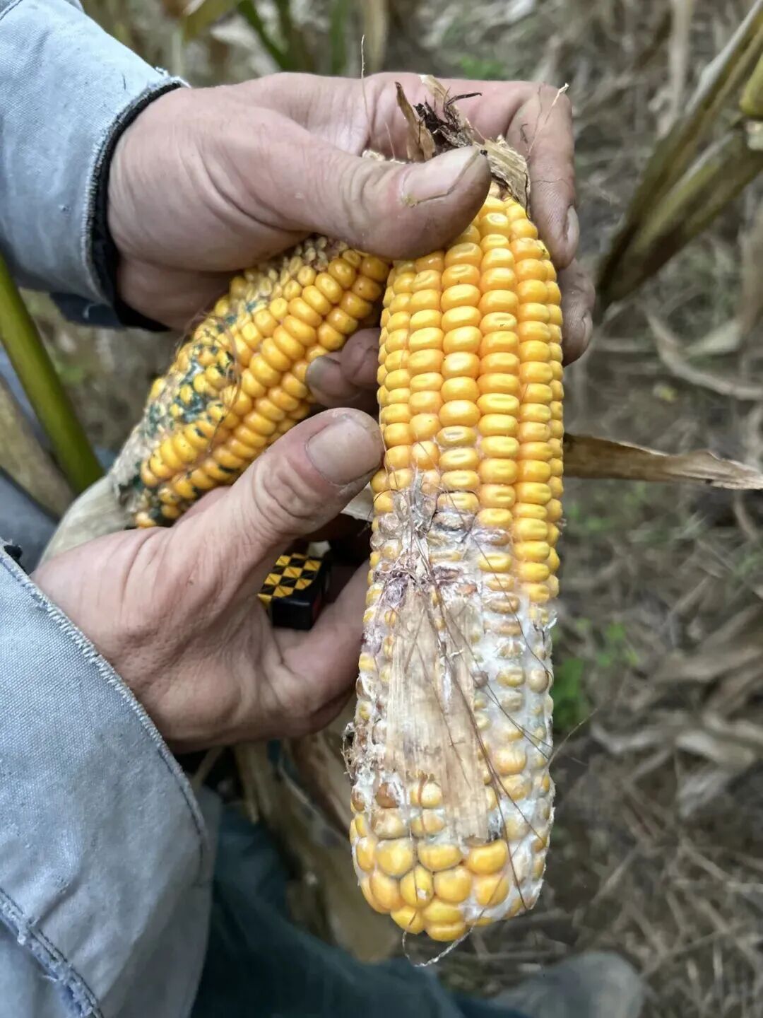 赵峰的玉米染了青霉菌和穗腐病。摄:裴丹