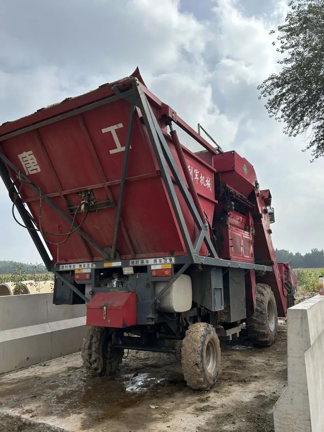 在邯郸曲周,小移庄村一位承包着200多亩地的村民尝试把收割机开到地里,但只收了一小片玉米,作业就被迫终止了,田地里裸露出混乱的轮痕。而在商丘的朱庄村,有农户为了抢救收割机,甚至还配了一台拖拉机守在旁边,以备救援。
