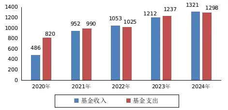 2020-2024年工伤保险基金收支情况(单位:亿元)