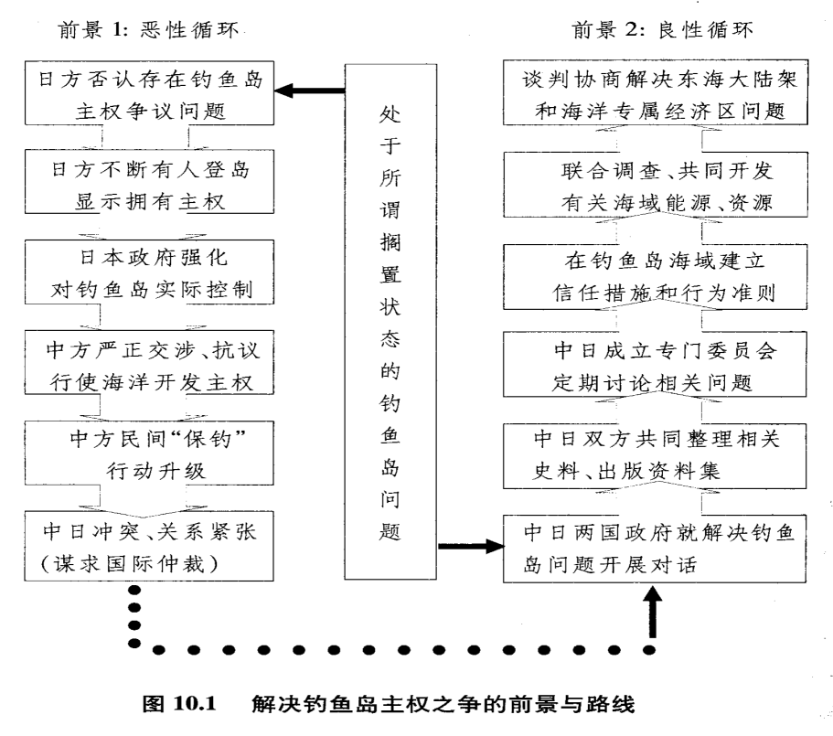 关于钓鱼岛未来的前景,我在2005年和2007年出版的书中已做过分析,如今近二十年过去,形势发展与我当时的预测基本吻合,我是依据中国《易经》阴阳变化系统的逻辑推演的。目前,我们正处在我所预判的“恶性循环”轨道上。