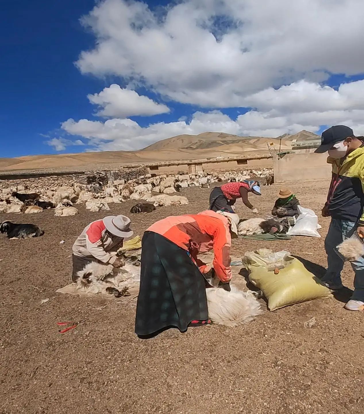牧民们在分工协作剪羊毛|图片来源:食物主权志愿者米玛