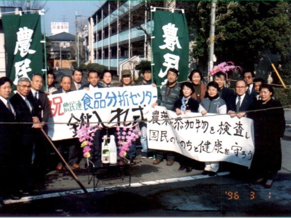 面对进口食品激增,无论是消费者还是生产者,都受到了非常大的影响。日本农民运动全国连合会(译注:Japan Family Farmers Movement "NOUMINREN",简称“农民连”。)的许多农户面对现实感到焦虑,他们一方面要求保证食品的生产安全,另一方面也要保证消费者的食用安全,决心必须要做些什么。经过各方讨论和摸索,我们发现可以通过科学的数据开拓一条运动的道路。在“农民连”的大力支持下,我们成立了这家食品分析中心。为什么说科学数据是一条新的道路呢?因为农民不管在哪里,都是受苦的一群人。然而在批判进口食品时,有时往往就变成批判其它国家的农民——我们认为这样做不公平。科学数据是中立的,我们便决定以科学数据为基础展开运动。