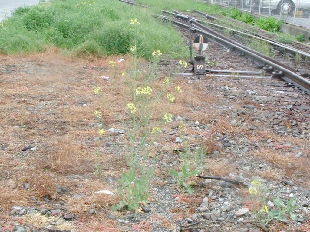 此外,我们还进行过与转基因有关的调查活动。图片中是转基因的油菜籽。大家能看到远处那丛草吧?二者之间仿佛像画了一道线似的,泾渭分明。由于是铁道附近,野草丛生,故喷洒了除草剂。但这株转基因油菜籽却“不畏”除草剂,一点都没有枯萎。类似这样的调查活动我们一直在做,希望更多人参与,一起解决转基因食品安全问题。不光是油菜籽,日本人餐桌上的许多食物都有转基因成分,并且拥有强力的专利保护。这种专利保护一旦蔓延,将会造成严重问题。这些年,我们的活动逐渐有了成果,也获得了环境省等政府部门的协助。