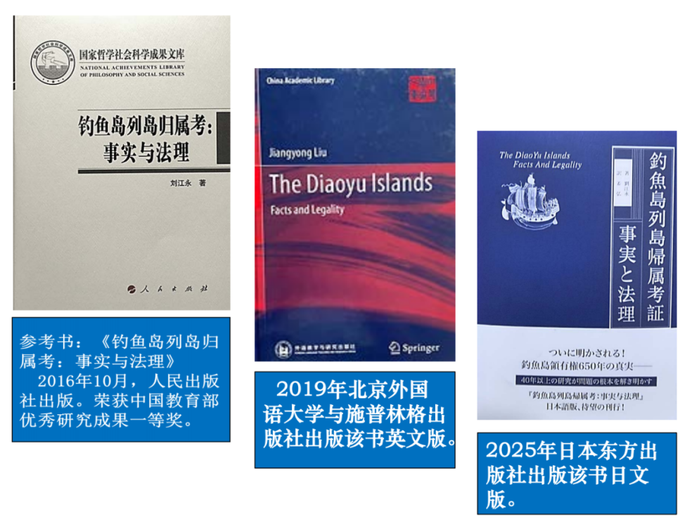 拙著《钓鱼岛列岛归属考:事实与法理》2019年由北京外国语大学的外研社和德国施普林格出版社合作翻译出版了一个简版,体量是中文著作的一半左右。今年(2025年)7月又出版了日文版,由人民出版社在东京的分支机构东方出版社出版。翻译是极其困难的工作,也是一种再创作。这本书的日文版是由北京师范大学日语专家姜弘老师主持翻译的,并经过中日两国学者的翻译校对。我认为这是一本质量很高的学术译作。