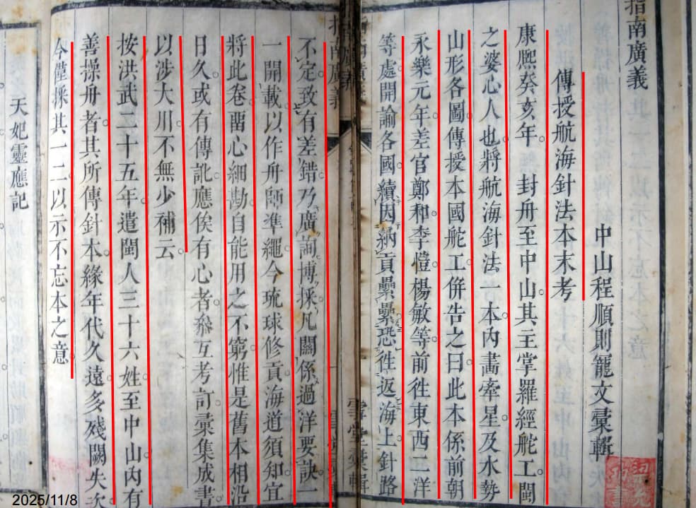 其中还强调,“洪武二十五年,遣闽人三十六姓,至中山。内有善操舟者,其所传针本,缘年代久远,多残缺失次,今仅采其一二,以示不忘本之意。”