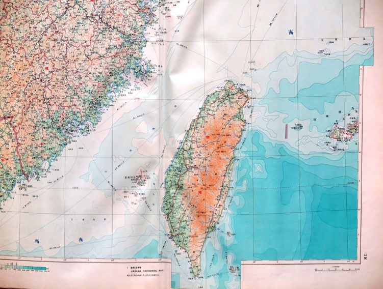 这幅地图出自中国1965年绘制、1969年出版的一本“机密”大地图册,其中第18页是福建省和台湾省的局部图,标注了“机密”二字。当时正值中苏边界局势紧张,如此详细的地图具有军事意义,或许因此而被列为“机密”。不知日方是如何获取这个“机密”地图册的。后来,日本自民党负责搜集、调查相关情报资料的一位众议员如获至宝,曾拿着这份地图的复印件来当面询问我的看法。