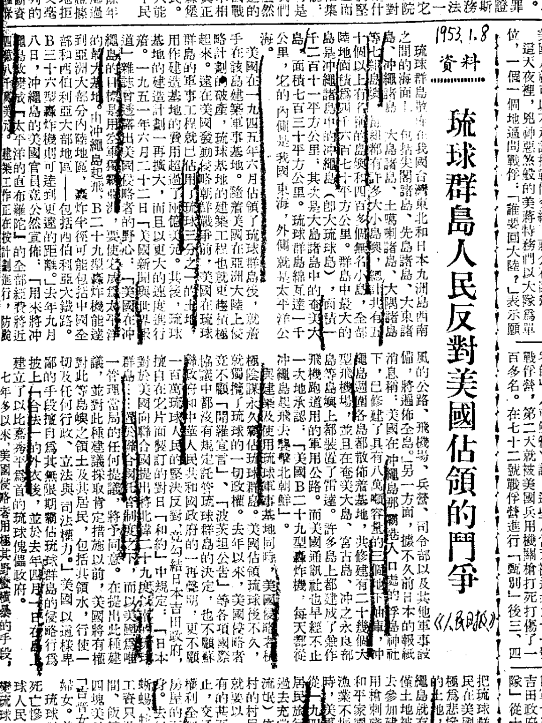 此外,日本外务省网站还展示出1953年1月8日《人民日报》发表的《琉球人民反对美国占领的斗争》这篇文章,并称中国承认“尖阁列岛”(钓鱼岛列岛)包括在琉球群岛之中。我对此也进行了查证。经核实,这篇文章确实存在错误,但它既不是《人民日报》的社论,也不是记者撰写的报道,而是一篇配合版面的编译“资料”,不能代表报社立场,更不能代表中国政府的官方立场。