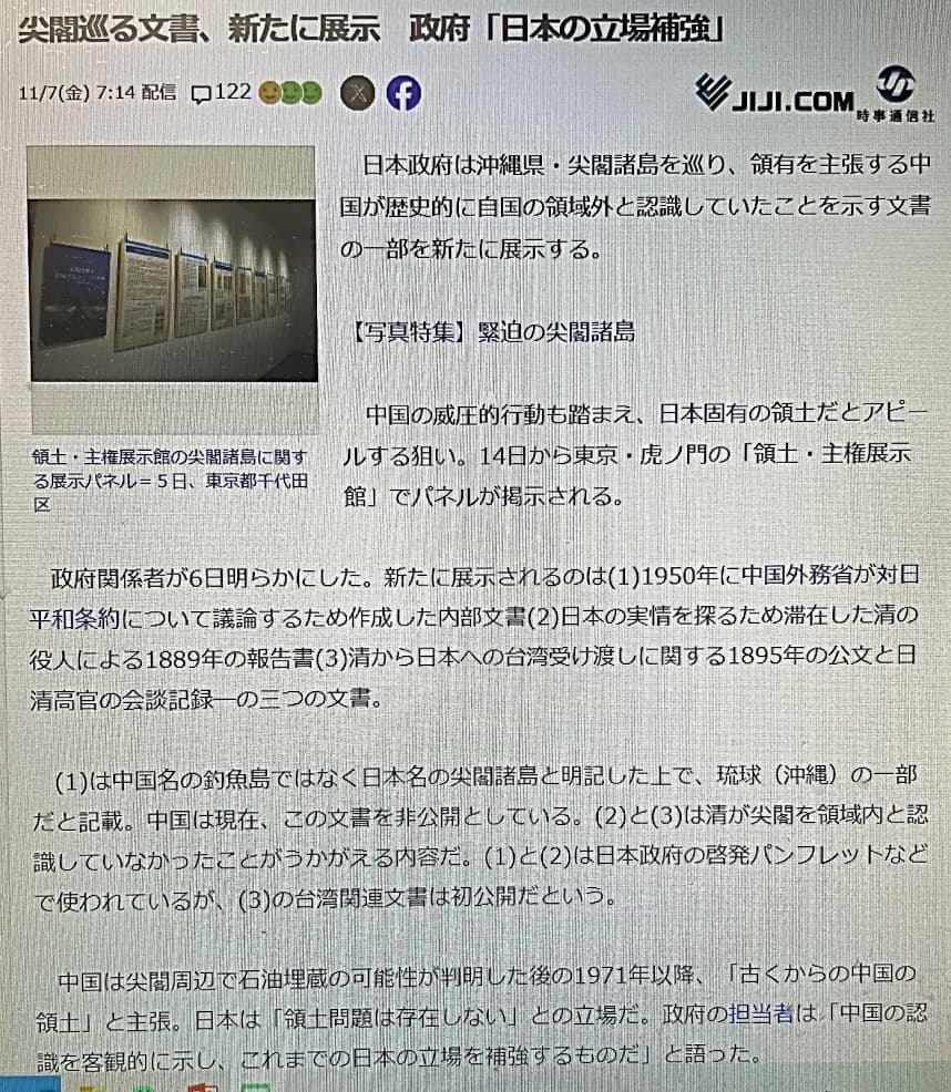 最后再和大家讲一下,据2025年1月7日日本媒体报道,位于东京虎之门的一个所谓日本“领土主权展览馆”展出了三个所谓“新证据”。我仔细看了一下,其实这些都是我十年前就已经批驳过的旧材料,可以说是“陈糠烂谷子”,毫无新意和价值。