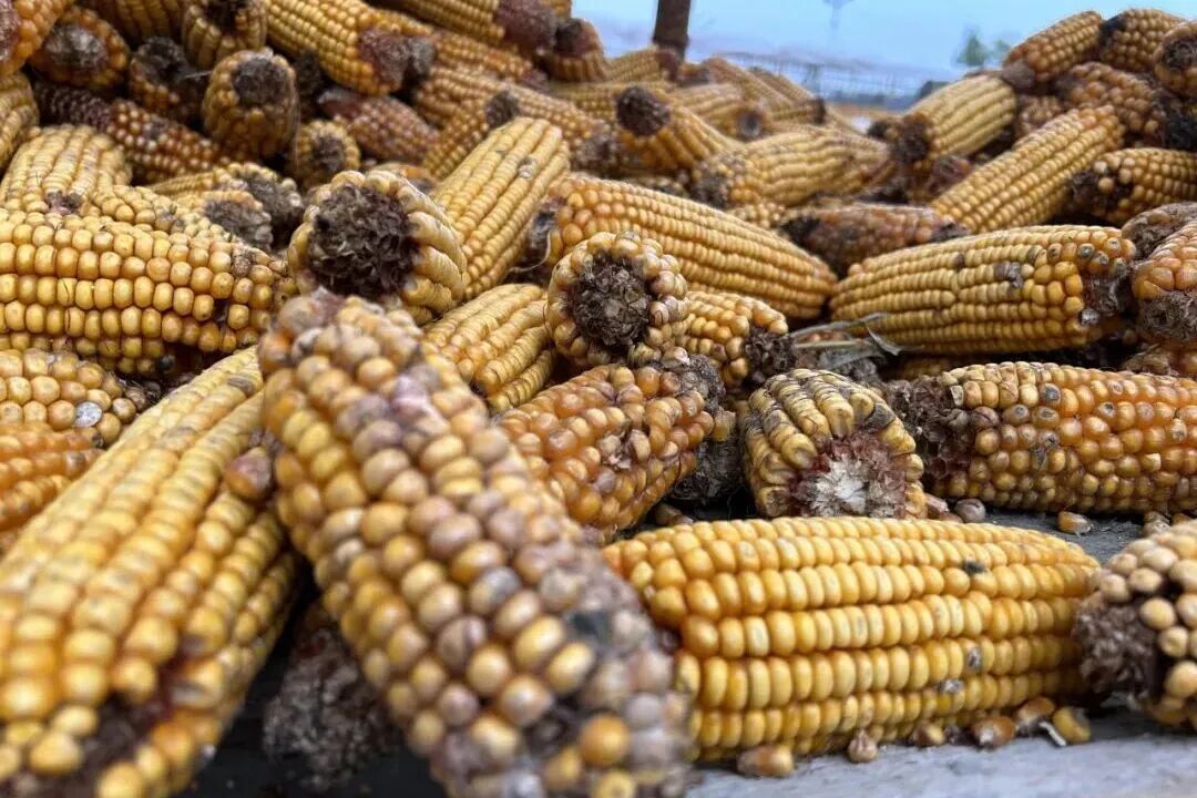 到了9月份,熬过干旱的玉米开始顶浆、即将成熟,盼了两个月的雨,不合时宜地来了。推迟的收割、玉米的发霉又带来了新的减产。“相当于叠了个buff。”李军说。