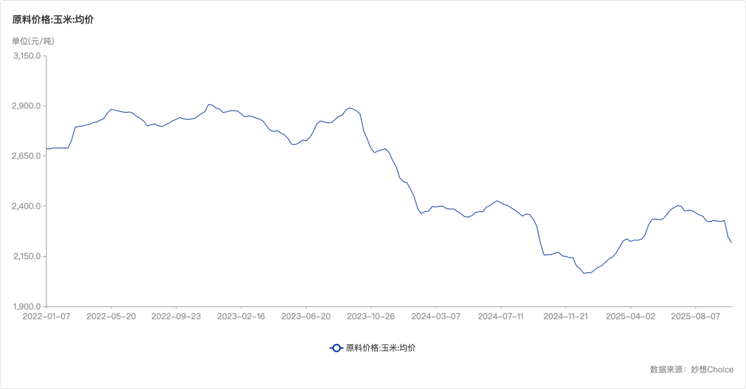 跌入最近几年的最低谷,2025年玉米价格才有所回升 | 图片来源:choice