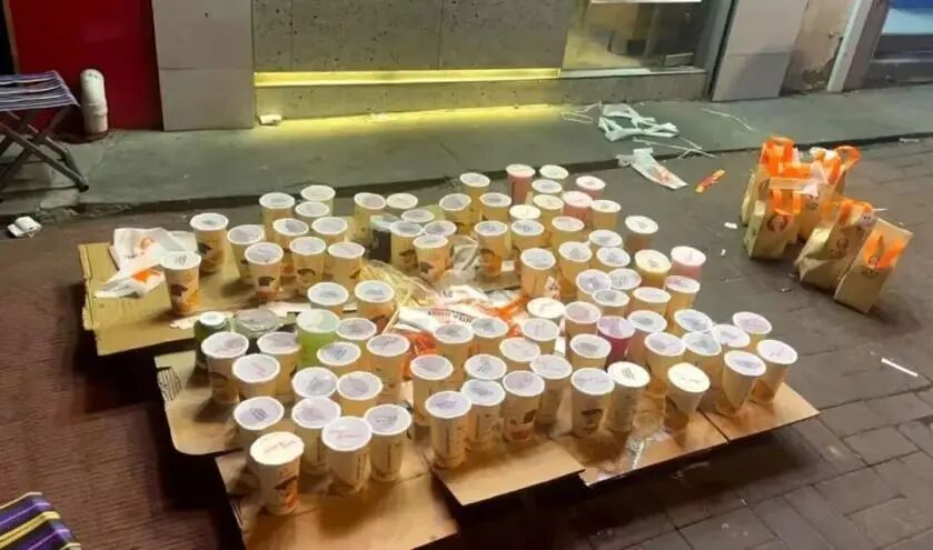 7月12日晚,天津一家饮品店外无人领取的饮品 | 图片来源:南方周末[1]